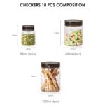 CELLO Checkers PET Kitchen Storage Canister Set – Transparent & Stackable (18-Piece)